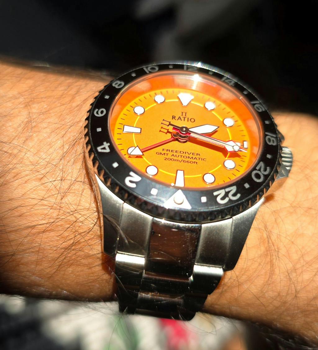 Ratio FreeDiver GMT Series Sapphire Stainless Steel Orange Dial Automatic RTF055 200M Men's Watch