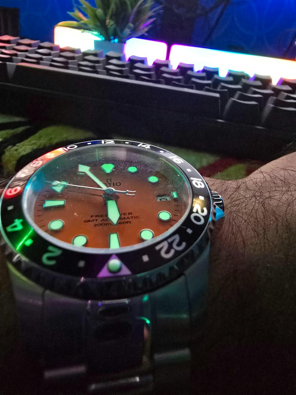 - Bezel Markers: Marked with 24 Hour GMT Time