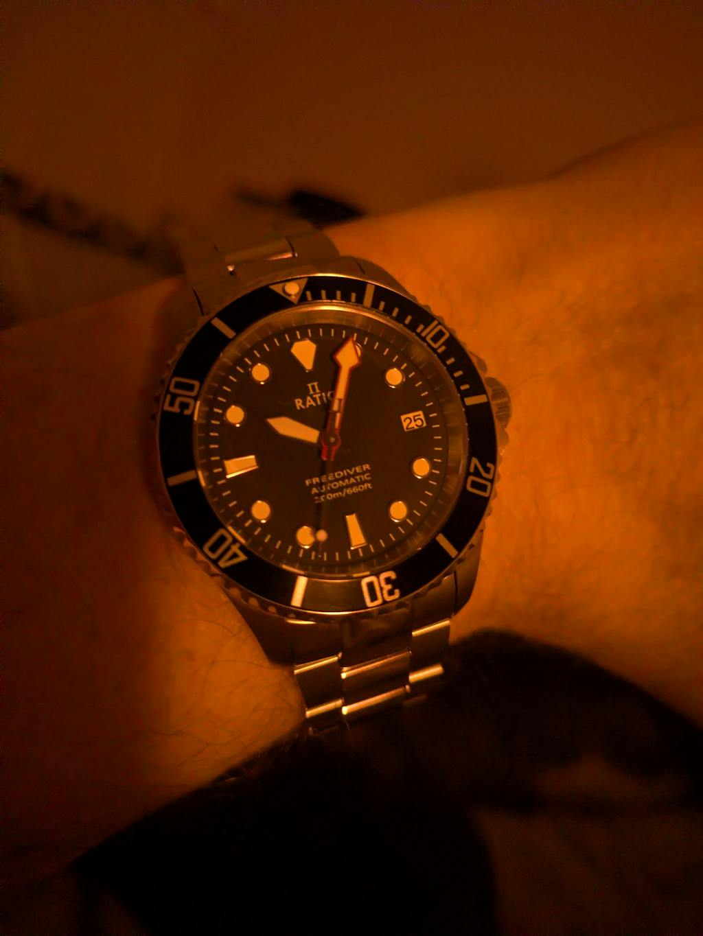 Crafted from high-grade 316L stainless steel, the case and crown of this dive watch are built to withstand the toughest conditions. We haven’t fabricated this watch just for looks; it’s been pressure-tested for water resistance up to 200 meters, making it an ideal companion for your aquatic adventures. The secure diver-style clasp keeps it firmly on your wrist, whether you’re swimming, diving, or simply exploring new horizons.