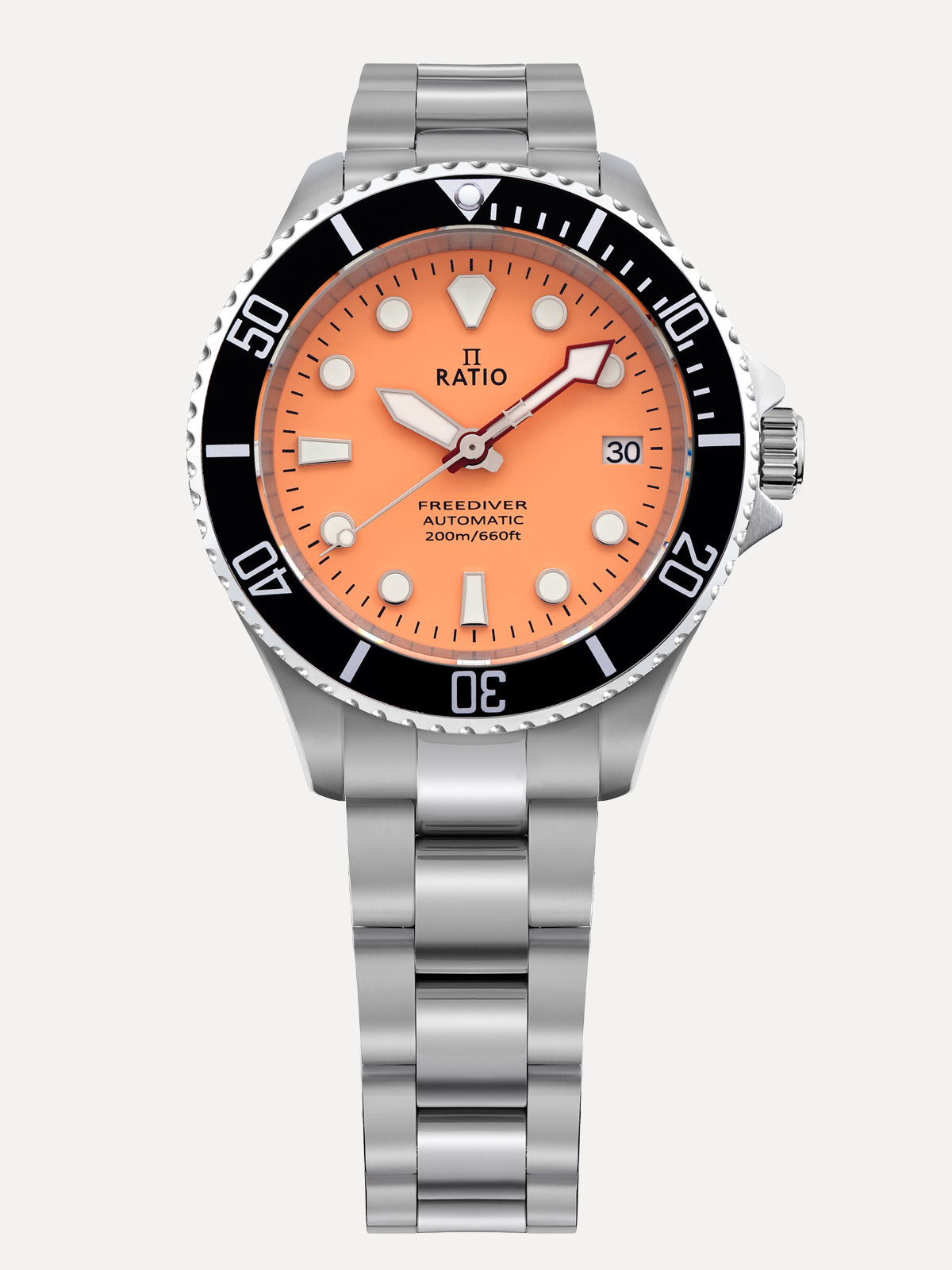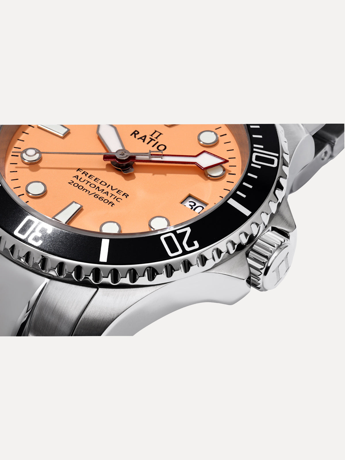 Ratio FreeDiver Sapphire Stainless Steel Salmon Dial Automatic RTF046 200M Men's Watch