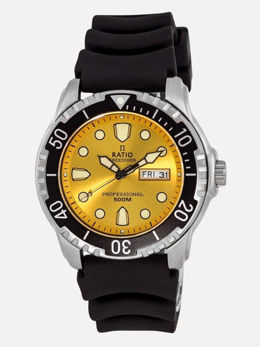 Ratio FreeDiver Yellow Dial PU Strap Quartz 48HA90-02-YLW 500M Men's Watch