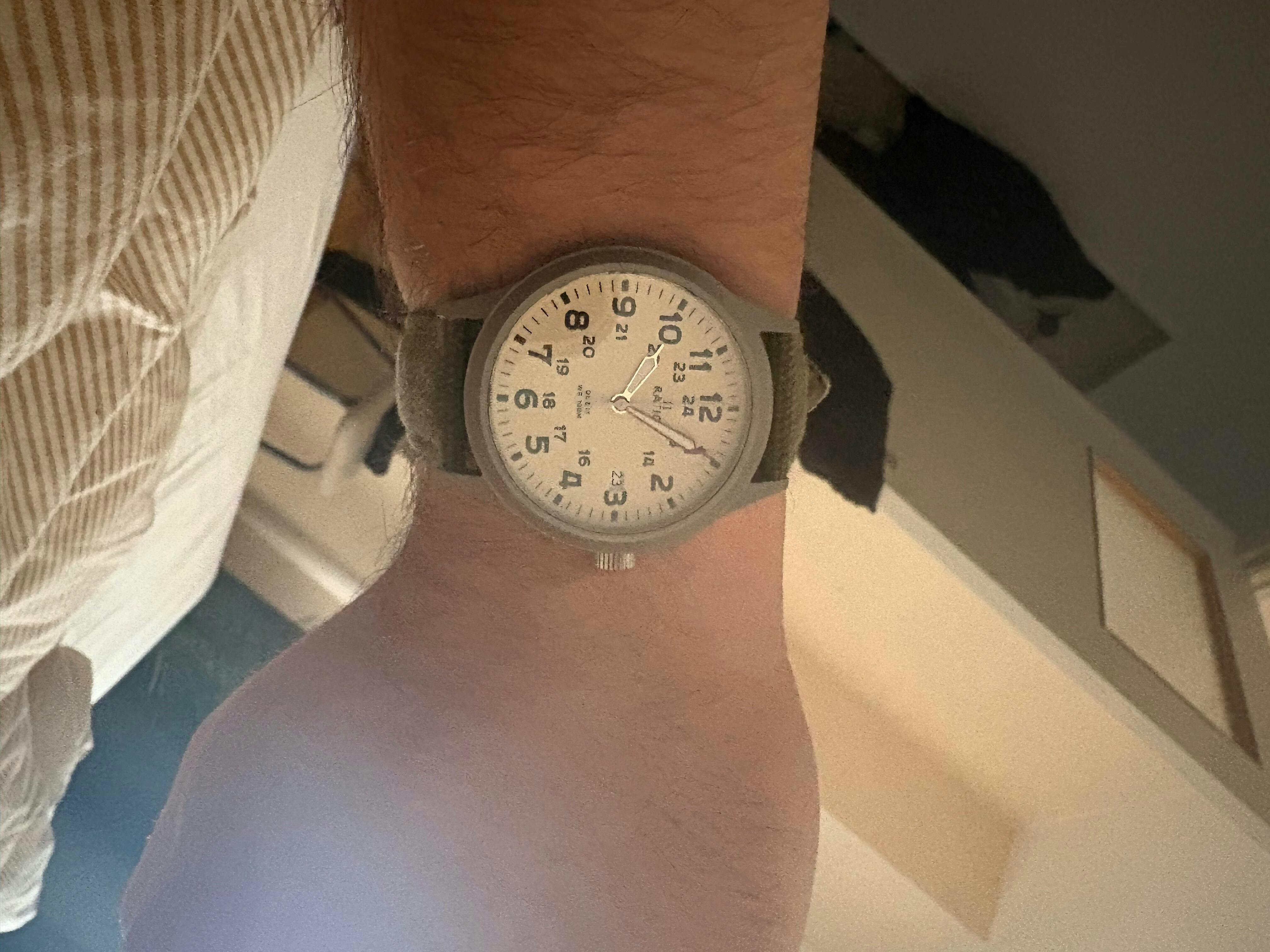 Equipped with features designed especially for explorers, this field watch boasts an anti-reflective coating on the crystal, reducing glare for clear visibility in all conditions. Its luminous hands ensure clarity in low-light conditions or during nighttime adventures. A secure buckle clasp keeps the watch firmly in place as you move, and with 100m water resistance, it’s suitable for swimming, snorkeling, or just hiking through streams, making your adventures boundless.