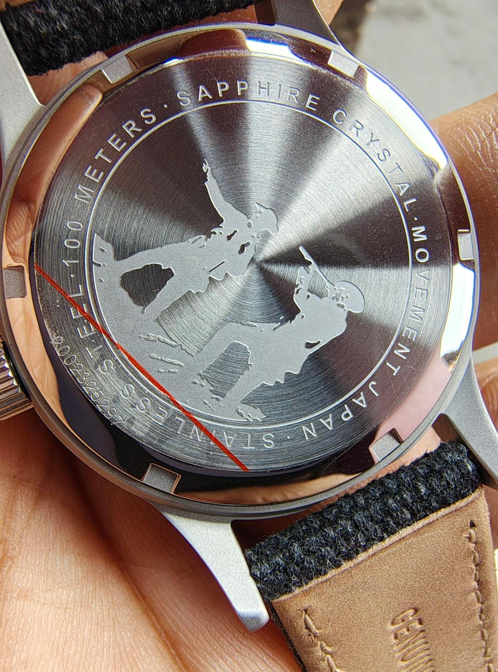 Equipped with features designed especially for explorers, this field watch boasts an anti-reflective coating on the crystal, reducing glare for clear visibility in all conditions. Its luminous hands ensure clarity in low-light conditions or during nighttime adventures. A secure buckle clasp keeps the watch firmly in place as you move, and with 100m water resistance, it’s suitable for swimming, snorkeling, or just hiking through streams, making your adventures boundless.