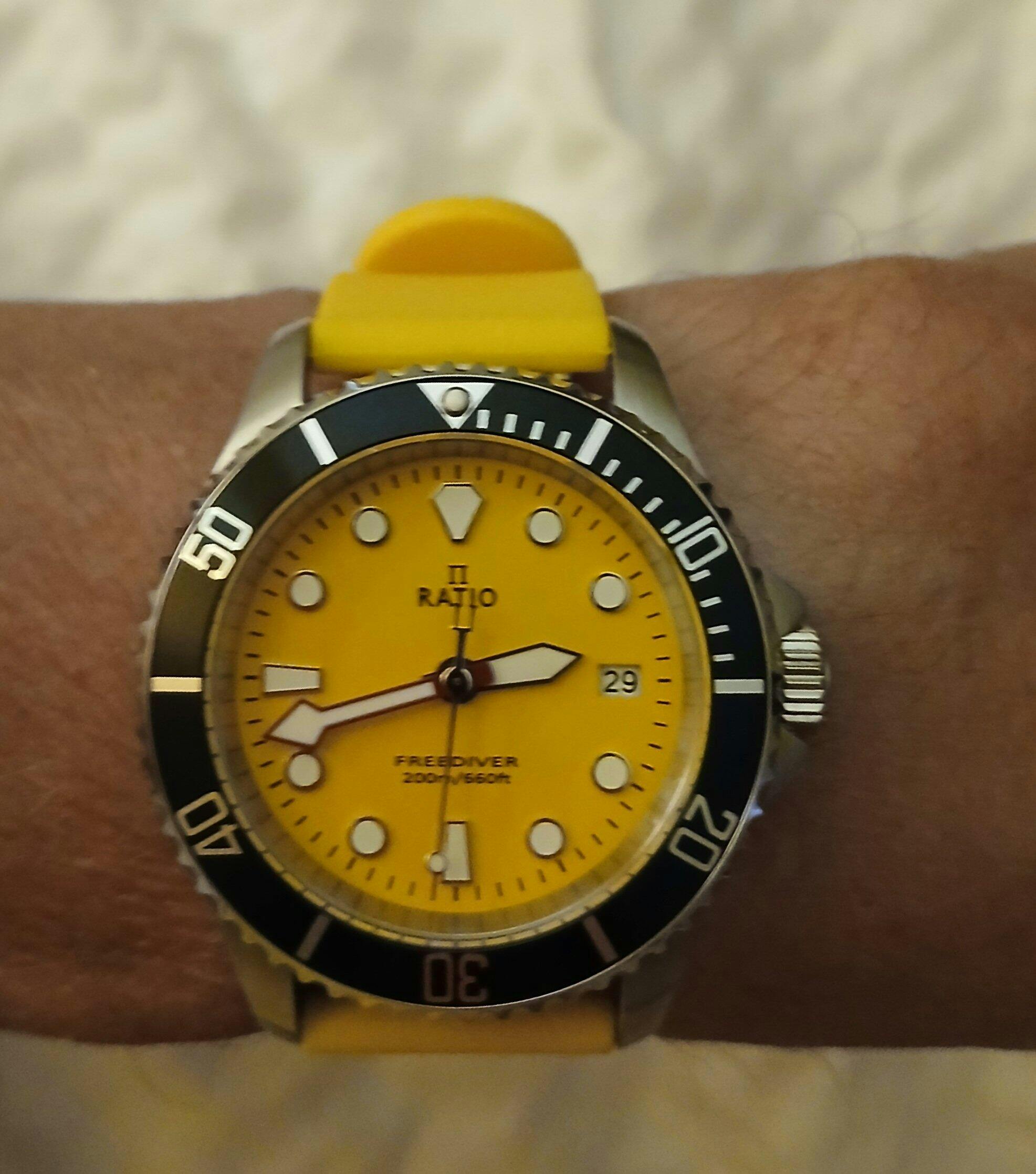 Ratio FreeDiver Sapphire Stainless Steel Yellow Dial Quartz RTF034 200M Men's Watch