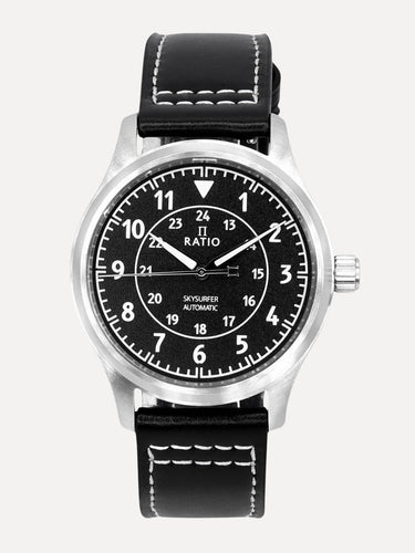 Ratio Skysurfer Pilot Black Textured Dial Leather Automatic RTS310 200M Mens Watch