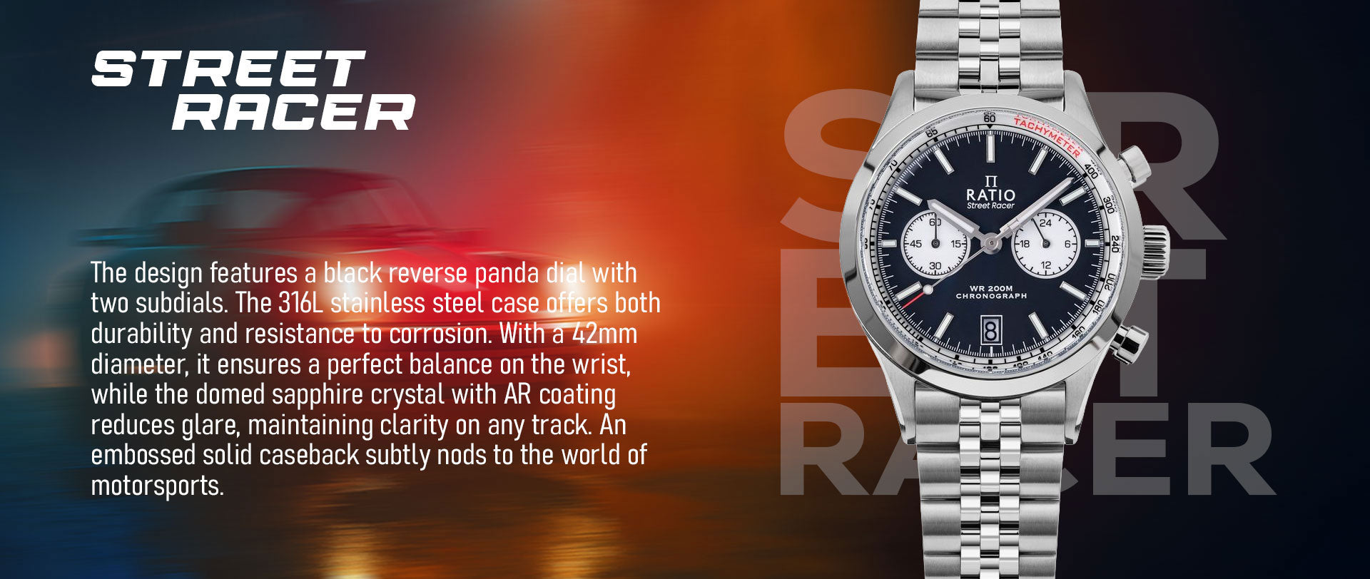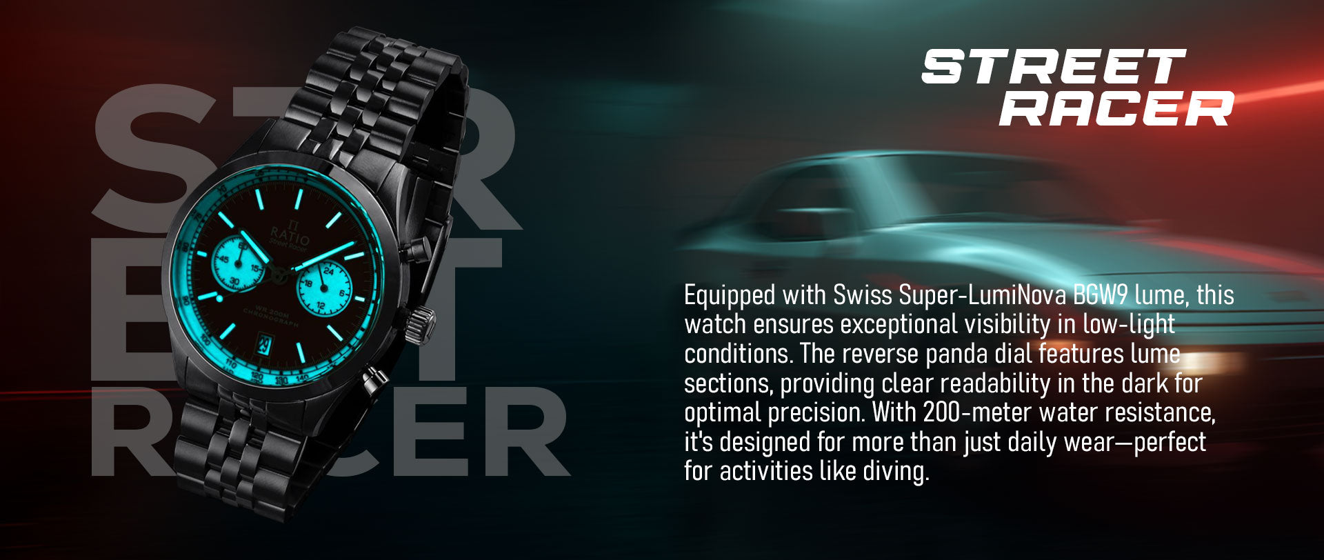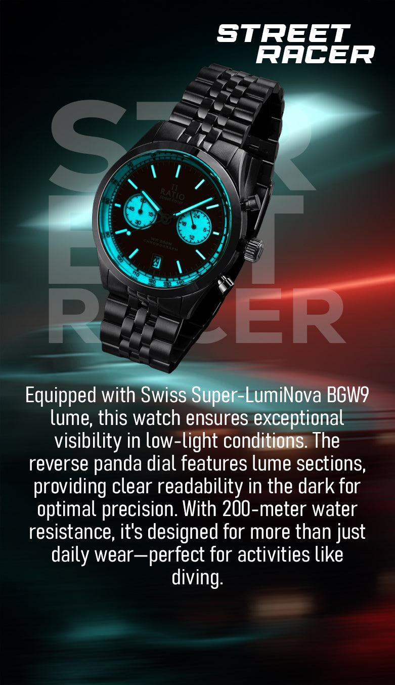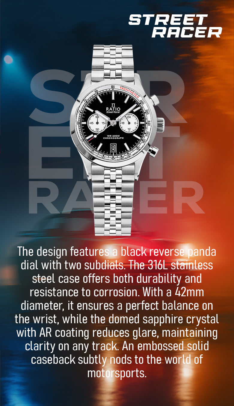 Ratio Street Racer Chronograph RTC012 200M Reverse Panda Dial Limited Edition Watch