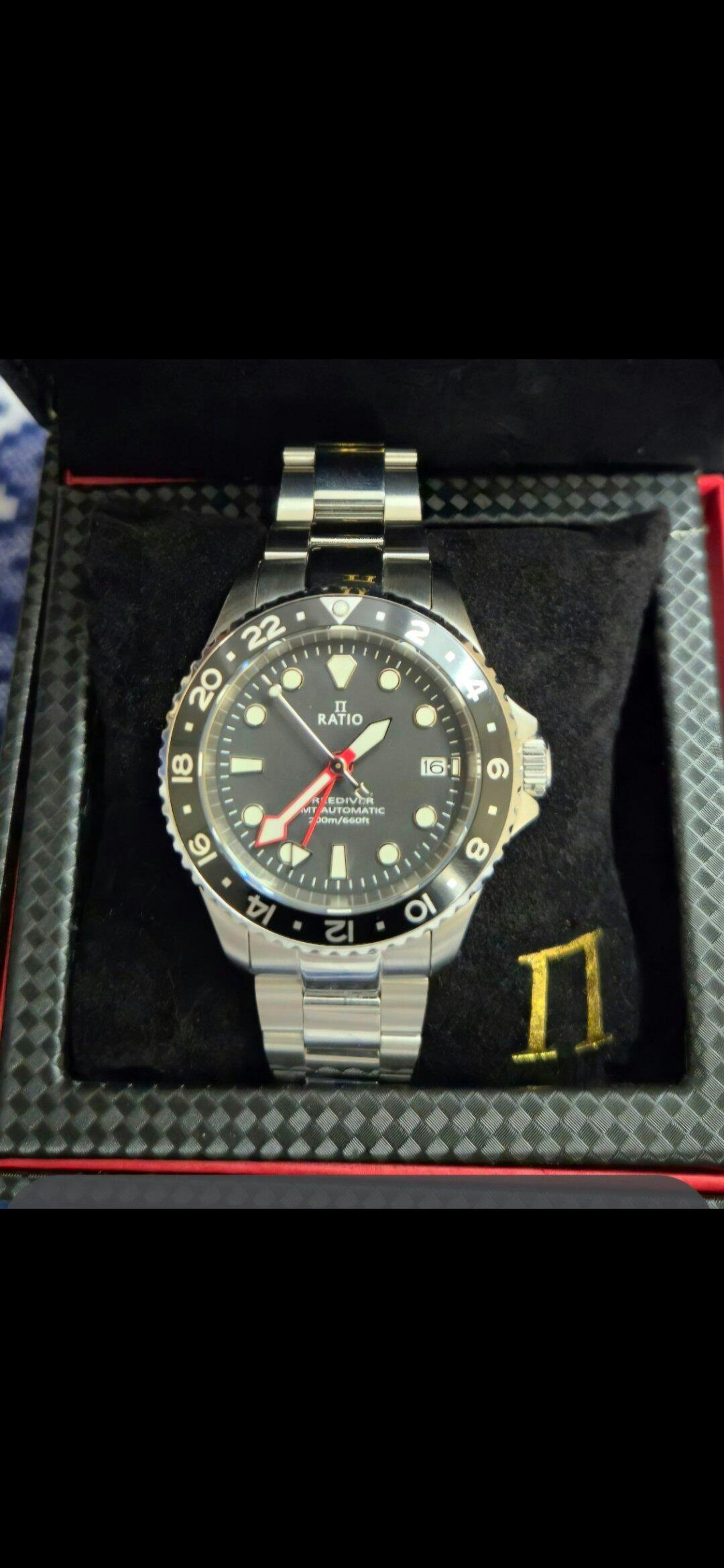 Ratio FreeDiver GMT Series Sapphire Stainless Steel Black Dial Automatic RTF051 200M Men's Watch