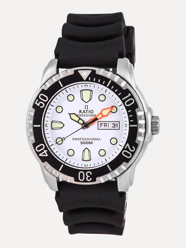 Ratio FreeDiver White Dial PU Strap Quartz 48HA90-02-WHT 500M Mens Watch