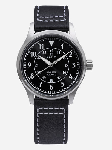 Ratio Skysurfer Pilot Black Sunray Dial Leather Automatic RTS314 200M Mens Watch