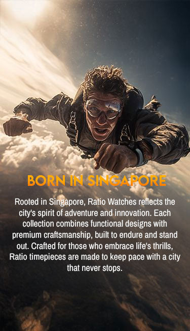 Each of the hour and minute hands of the Ratio Skysurfer watches comprises two parts. These are the base part and the top part placed one atop the other. The 3D visual effect comes from this design maneuver; its prominence is further enhanced by the application of the high-quality luminous paint from Japan! The thin, cylindrical seconds-hand has the Ratio logo attached to its end. This logo, apart from counter-balancing the seconds-hand, enhances the overall visual appeal of the watch face.